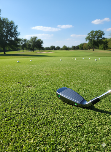 Embedded in the club head are 2 ground facing lasers. the laser beams create a visual path on the green as the player completes their swing.